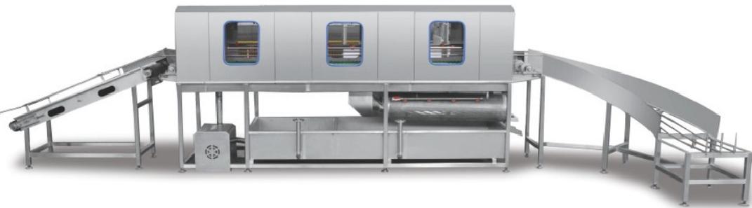 The working principle is the same as the semi-open pre-chiller, with large output, suitable for medium and large slaughterhouses. All made of stainless steel 304;Frequency conversion speed regulation; The diameter of the pool body is 2-3.3 meters, which can be customized according to the customer's output.