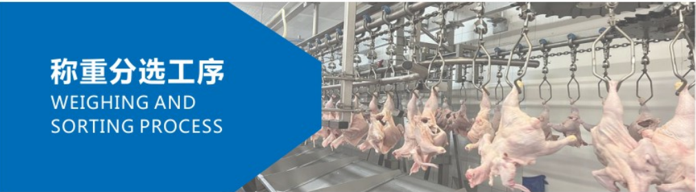 1.The linear carcass online weighing and grading system has wide adaptability. It can be hung on the head or on one leg, and suits for chickens or ducks. Its flip-up hook mechanism can be hung on the head for weighing and unloading, especially suitable for killed or stripped feather off chickens and ducks weighing and grading. The pneumatic impact plate of the unloading mechanism does not contact the chicken body, which can effectively avoid damage to the chicken body.