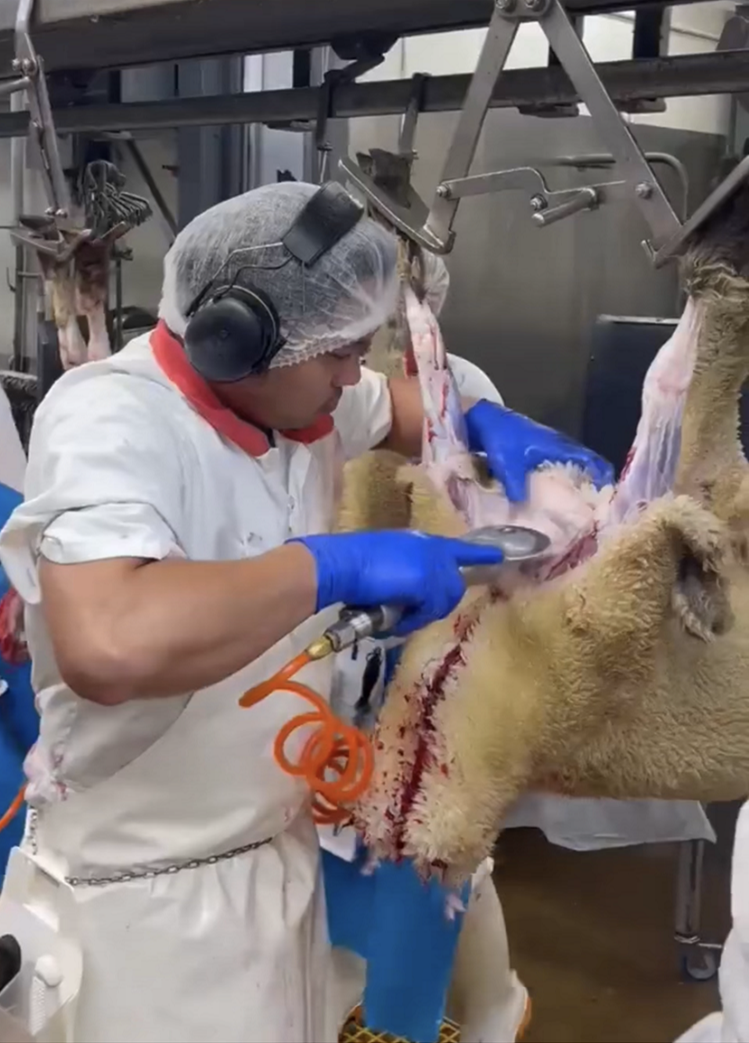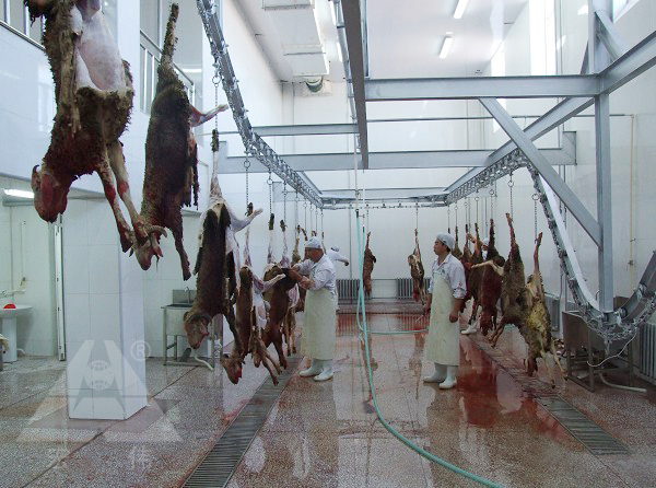 Sheep goat slaughterhouse butcher carcass hanging hook