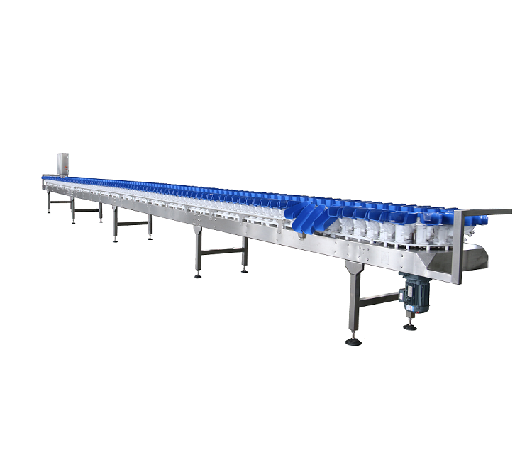 automatic bucket conveyor type chicken weight sorting grading scaling weighing weigher machine for broiler poultry dressing plant slaughterhouse abattoir