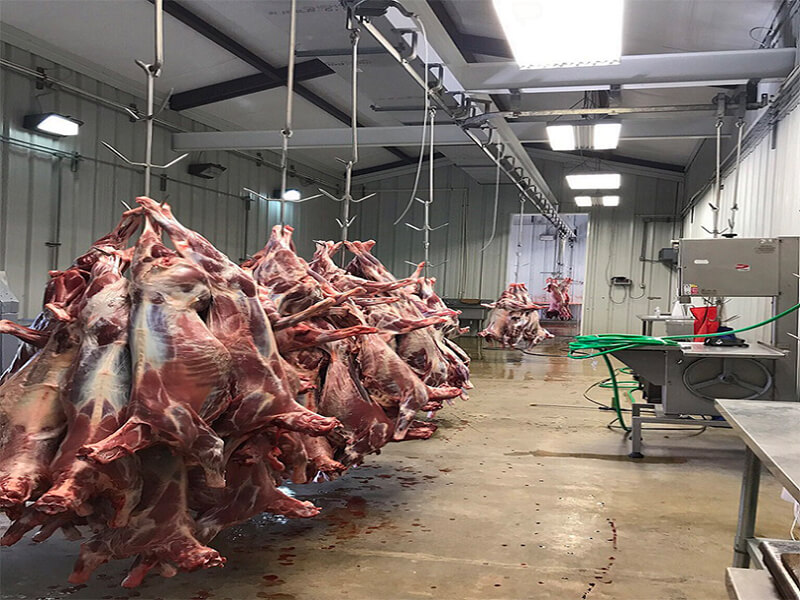 large cattle cow beef slaughtering slaughterhouse abattoir equipment hanging pulley meat carcass hanging sliding trolley rails and hooks cattle
