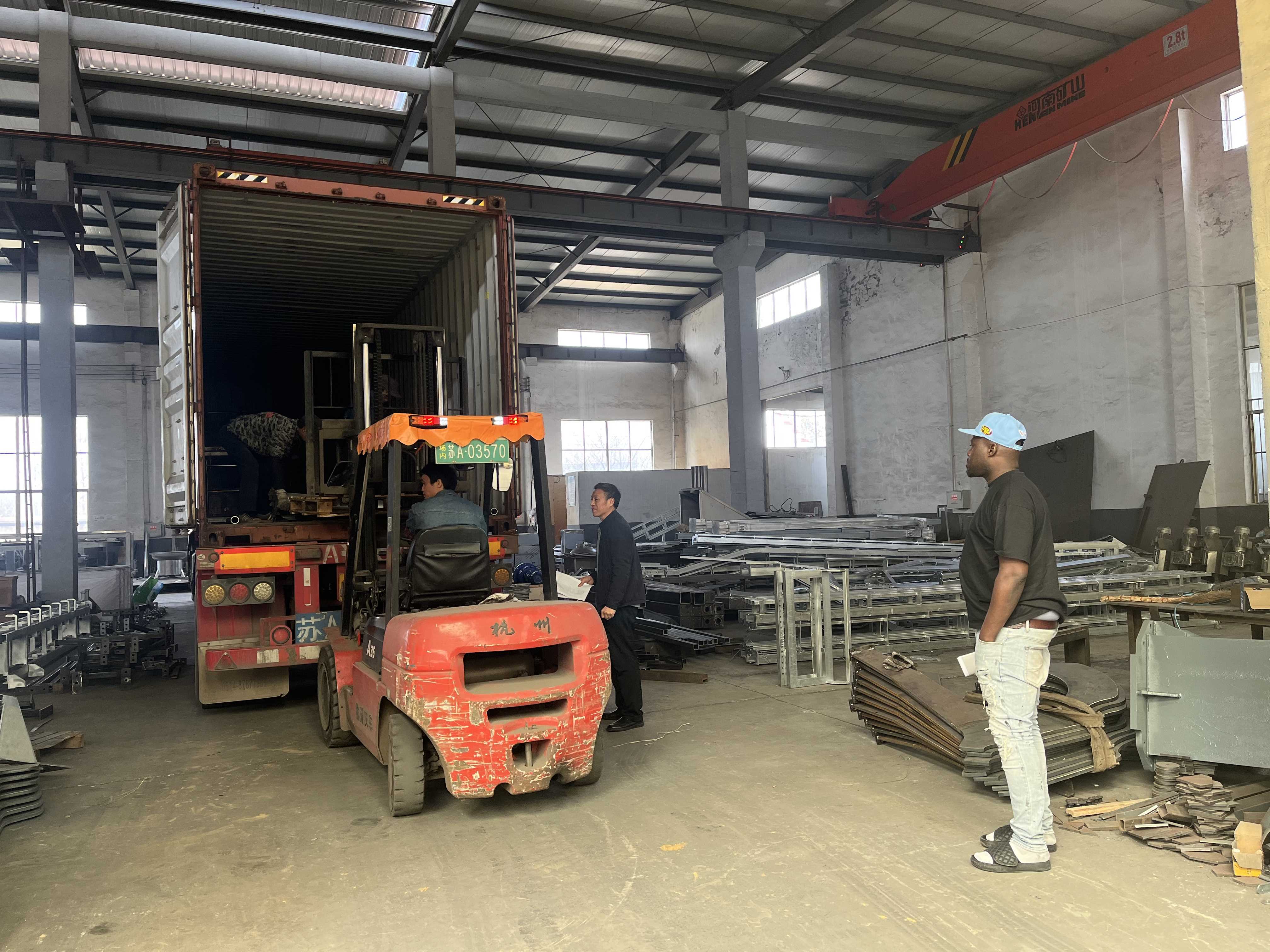 Senegal customer watching loading cattle beef cow buffalo sheep lamb goat abattoir slaughtering equipment in Nanjing Hongwen Machinery Technology Co.,Ltd workshop2025-08-05