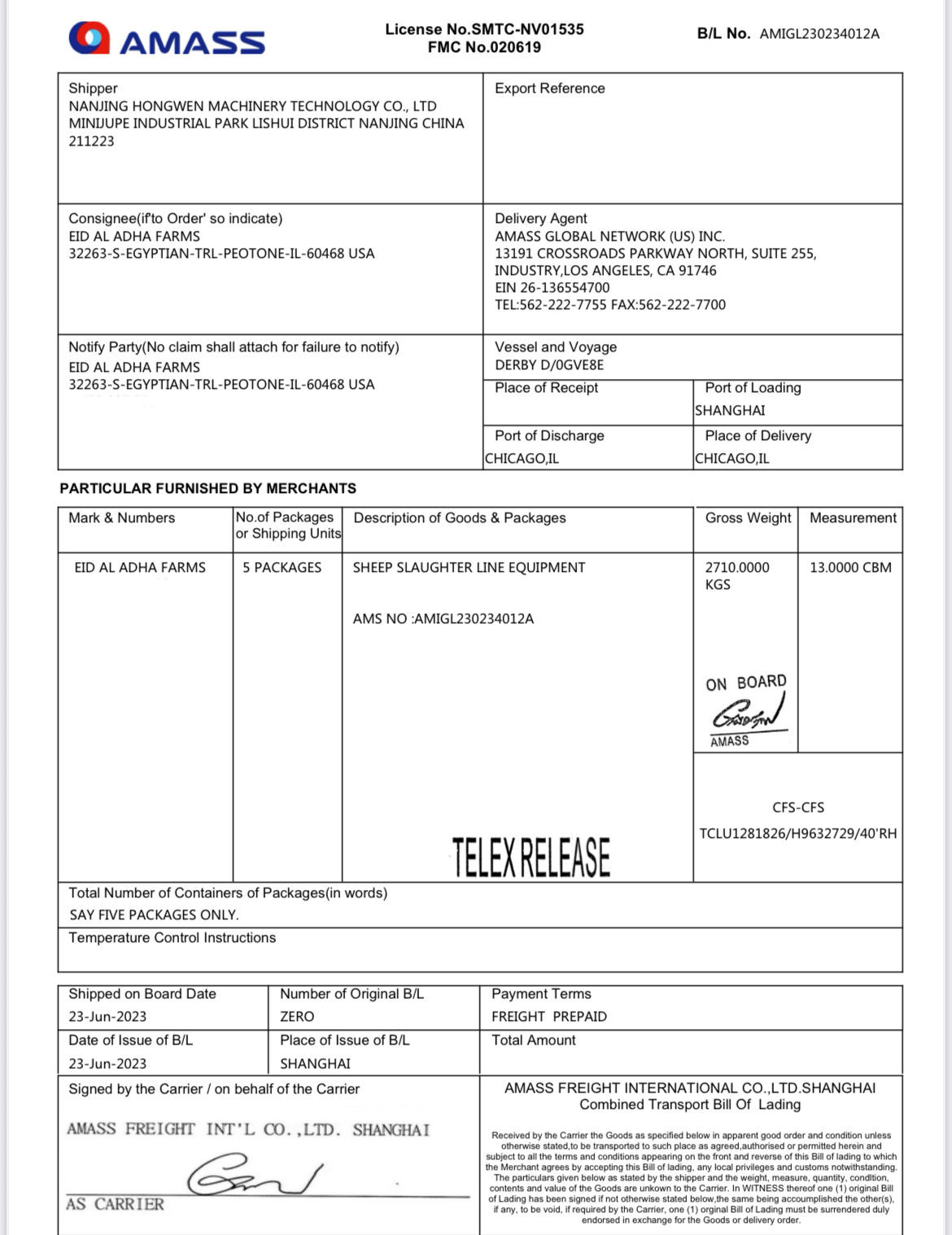 U.S. customer ordered sheep goat lamb abattoir slaughterhouse line equipment from Nanjing Hongwen Machinery Technology Co.,Ltd2025-08-06