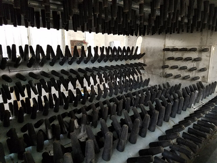 1) Hot galvanized steel or stainless steel main frame 2) Hot galvanized steel or stainless steel axis 3) stainless steel raking 4) stainless steel plate shell 5) Drive chain and sprocket 6) Hydraulic pressure station 7) Oil cylinder and hydraulic control system and soft pipe 8) Rubber bar |