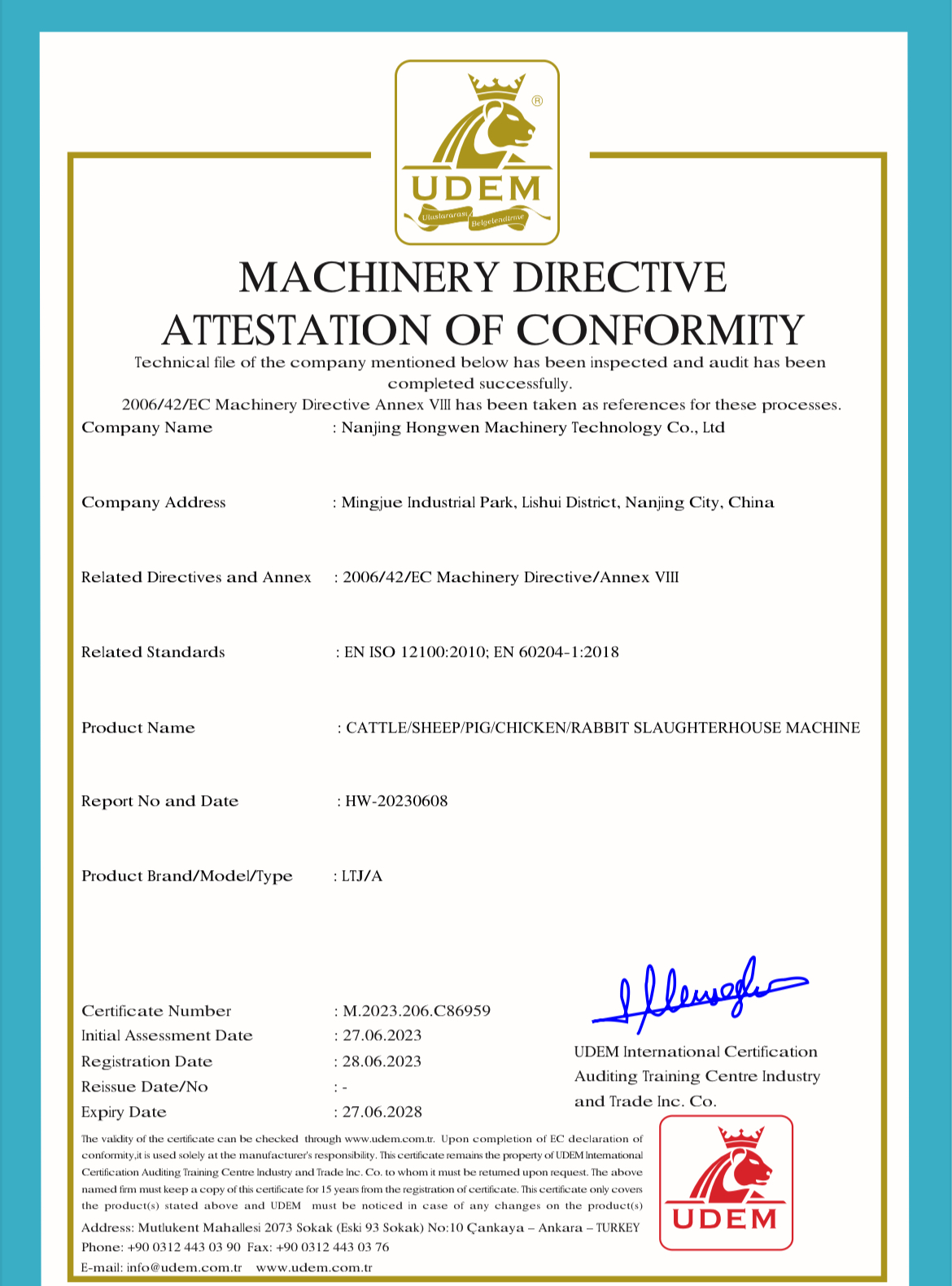 Nanjing Hongwen Machinery Technology Co., Ltd is CE ISO certified modern slaughterhouse abattoir slaughtering equipment manufacturer